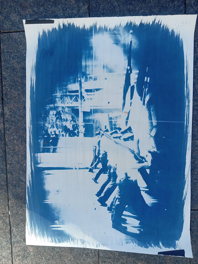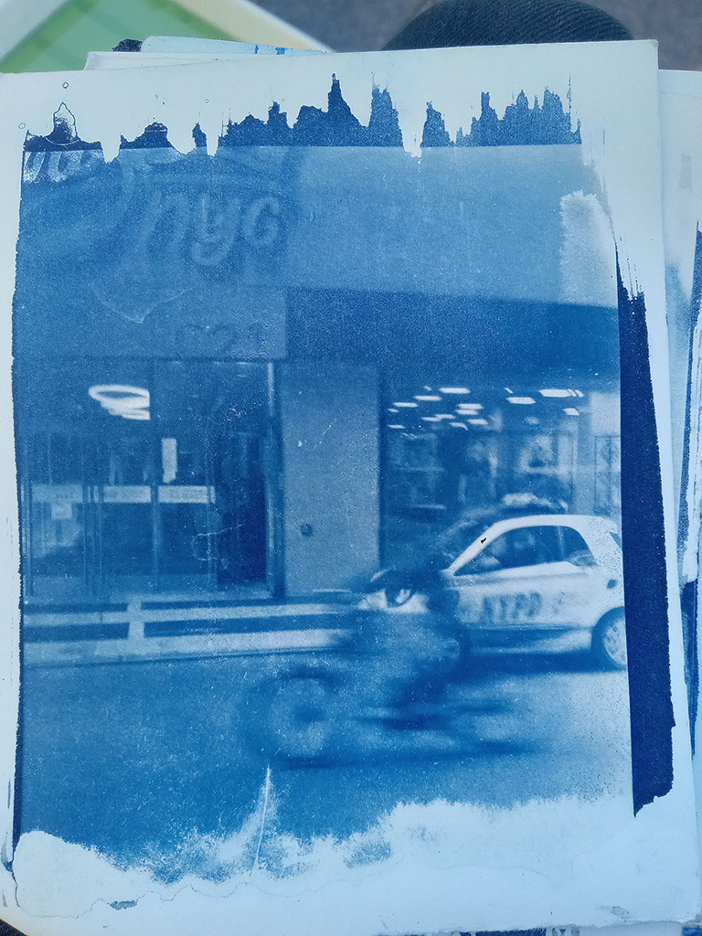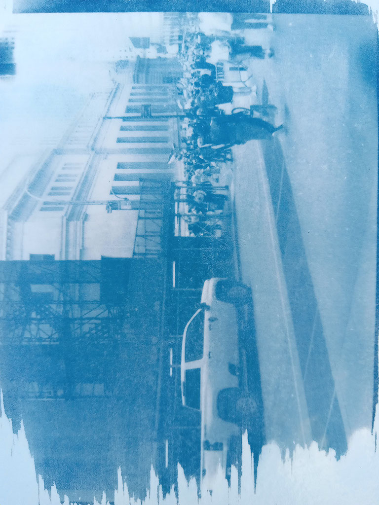 s'arrete a l'autre cote de la rue et descendu